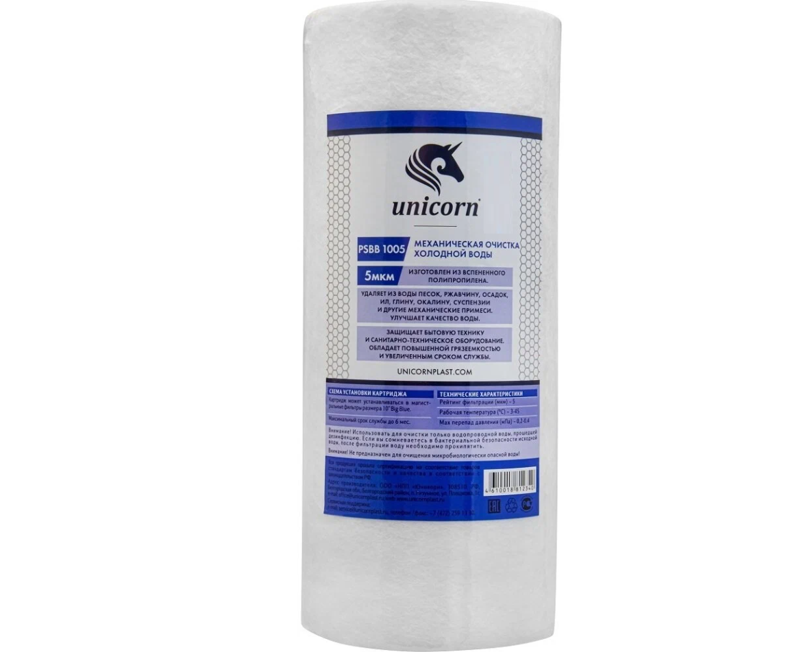 Картридж механический вспененный полипропилен 5 мкм Big Blue 10" Unicorn PS BB 1005 интересное: