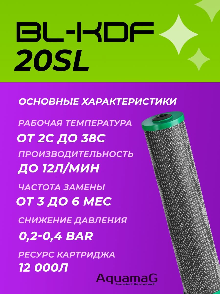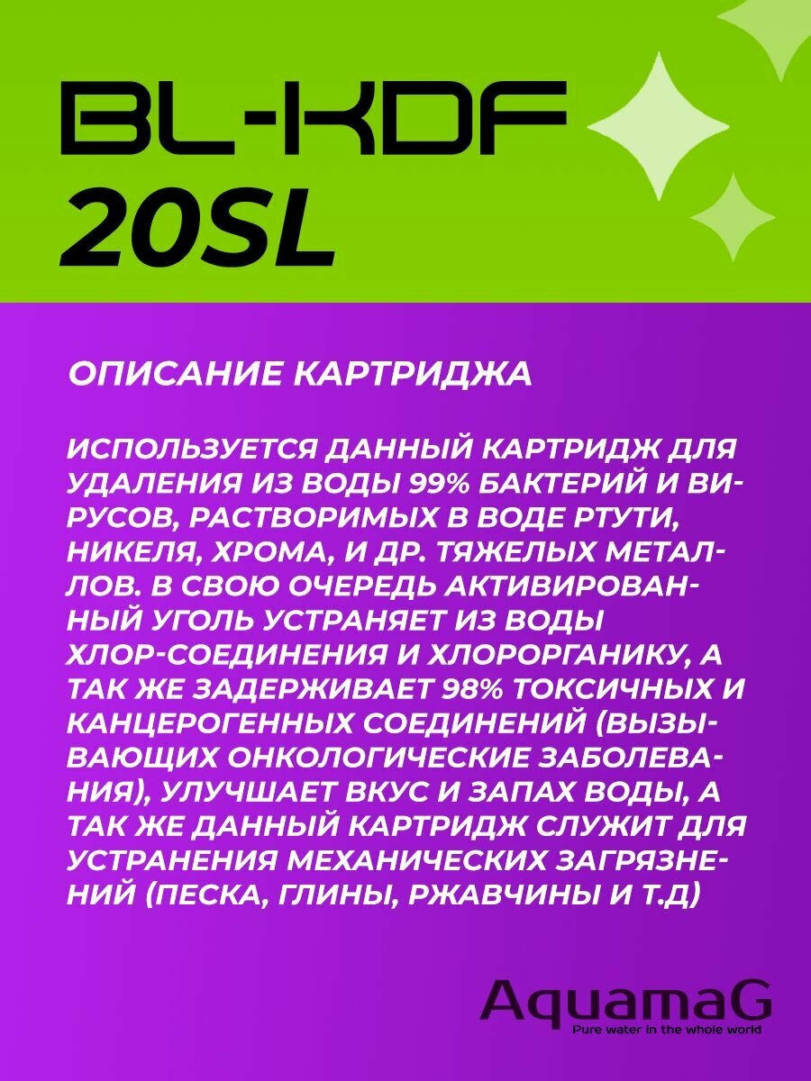 Картридж для фильтра воды с прессованным бактерицидным углём BL-KDF 20 SL 2 шт интересное:
