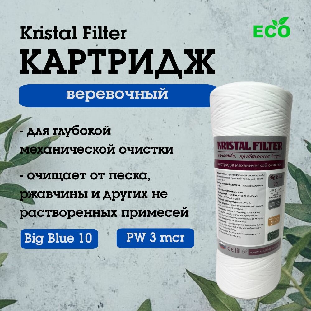 Картридж для фильтра Kristal Filter Big Blue 10" PW 3 mcr для глубокой механической очистки, веревочный интересное: