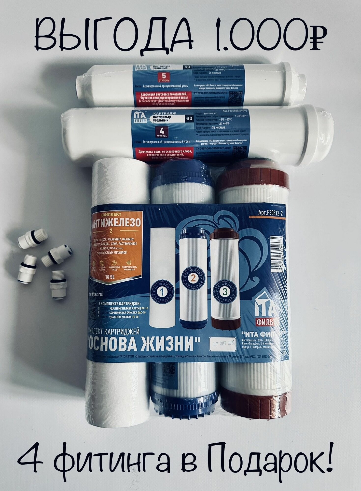 Комплект картриджей 5-и ступенчатый, "Онега-Антижелезо" ITA Filter (4 фитинга 1/4 в комплекте) интересное: