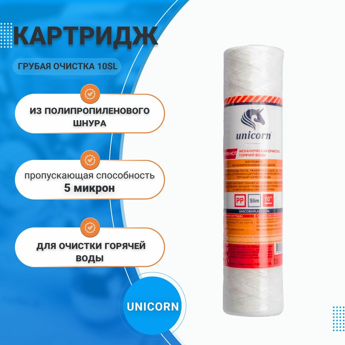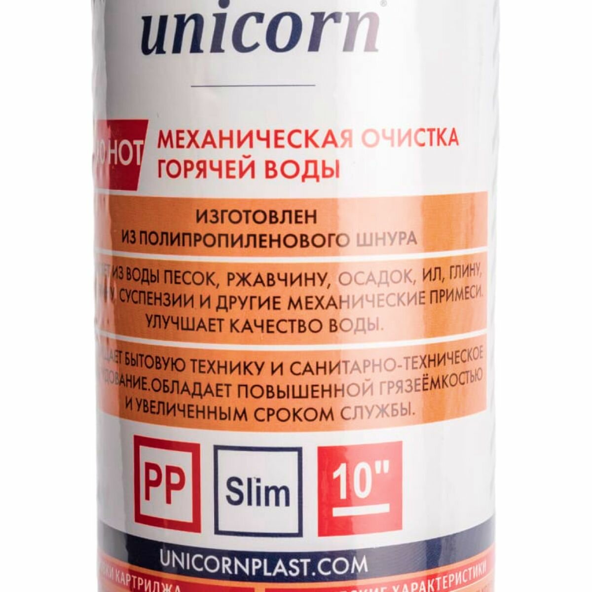 Купить Картридж из п/п шнура для механической очистки горячей воды 10" PP 1005 HOT, Slim, Unicorn, 5 микрон