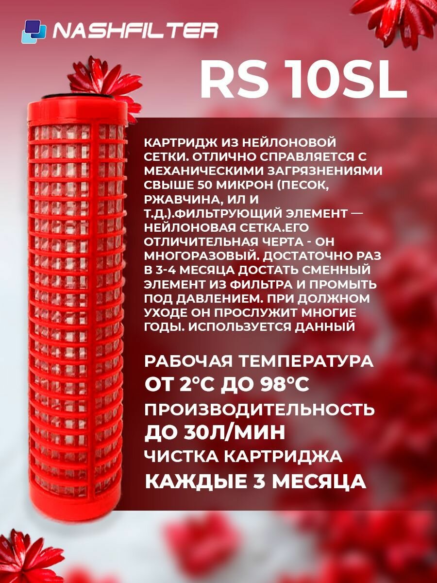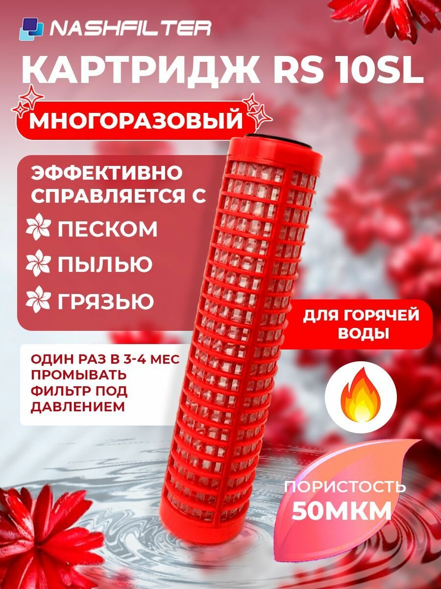 Купить Картридж из армированной сетки RS 10SL для механической очистки горячей воды 50 мкм, Slim Line 20