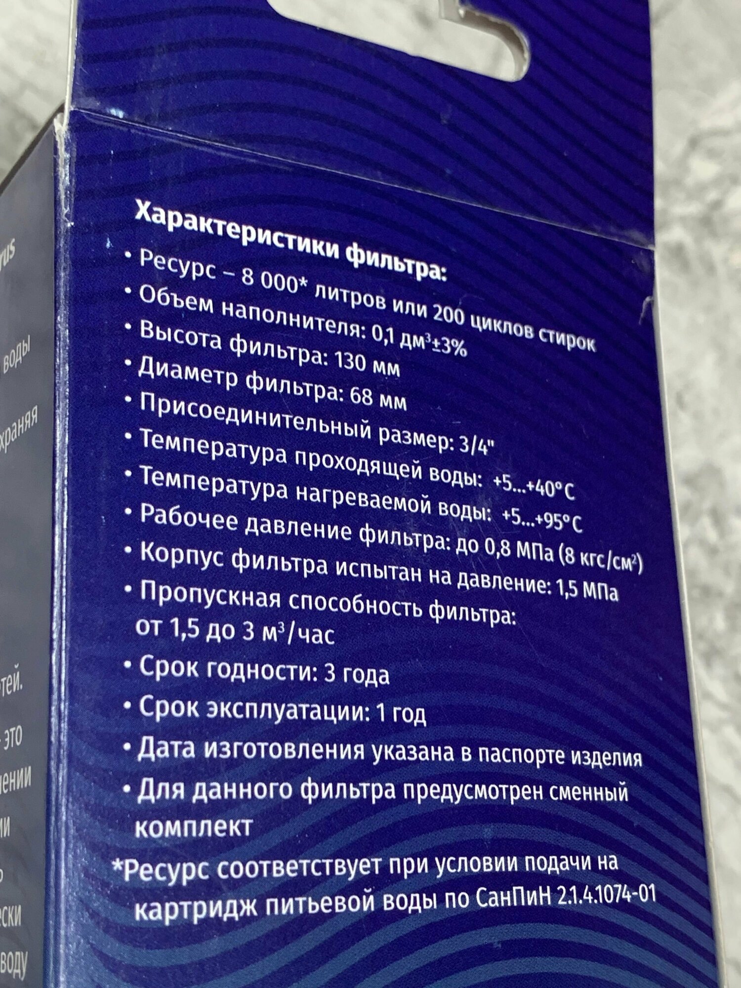 | Ресурс фильтрующего элемента | 8000 л |