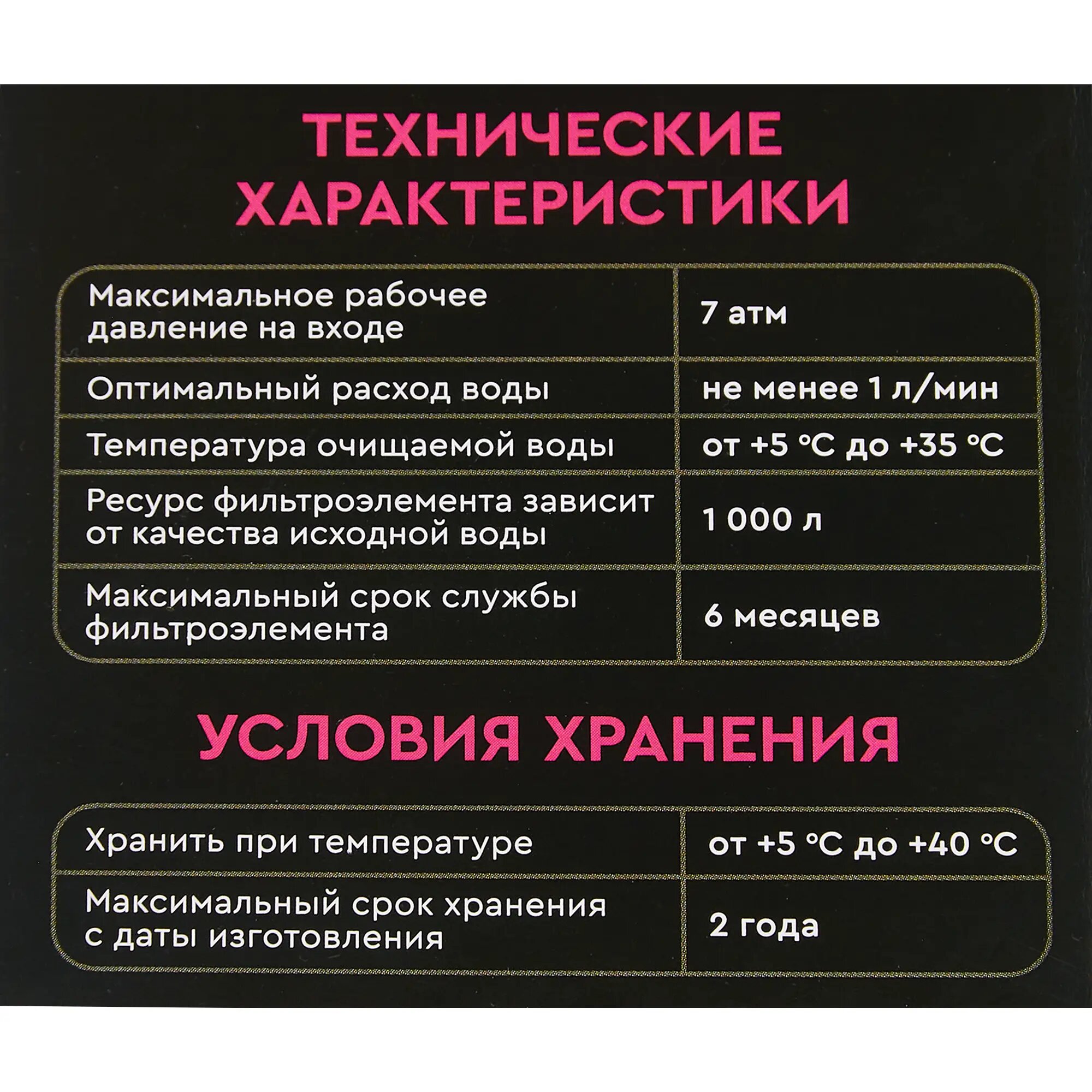 | Ресурс фильтрующего элемента | 1000 л |