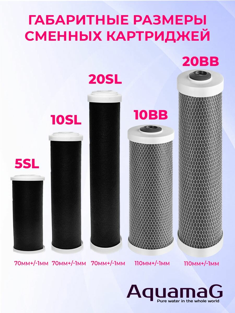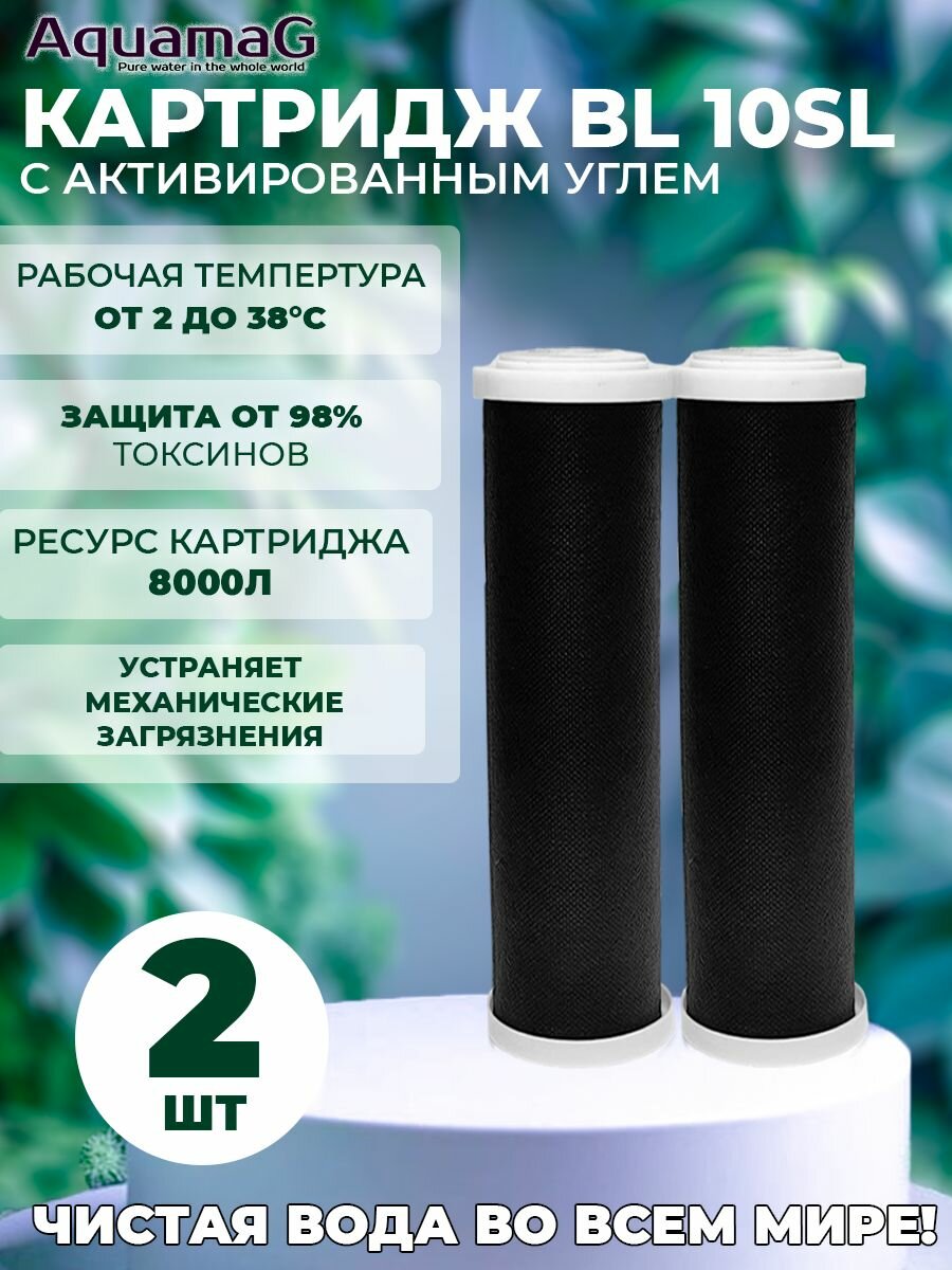 Угольный картридж для фильтра AquamaG BL 10 SL , для сорбционной очистки воды (от хлора и органических соединений) 2 шт интересное: