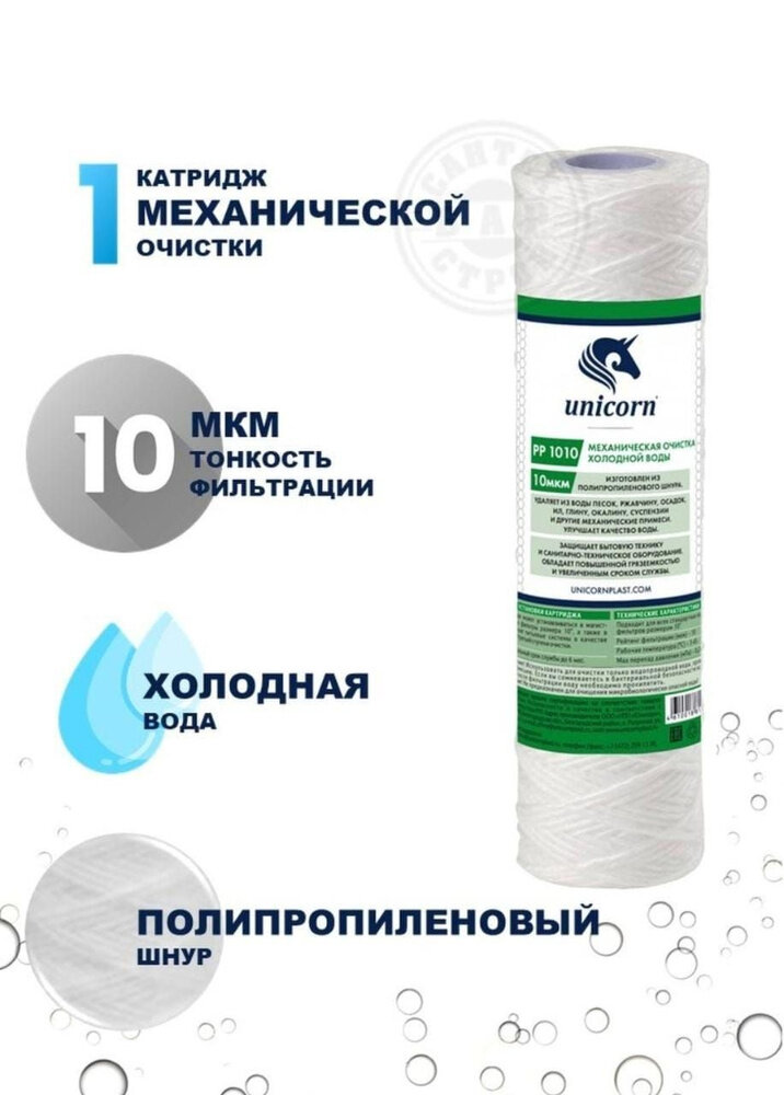 Картридж механический полипропиленовый шнур 50 мкм Slim Line 10" Unicorn PP 1050 интересное:
