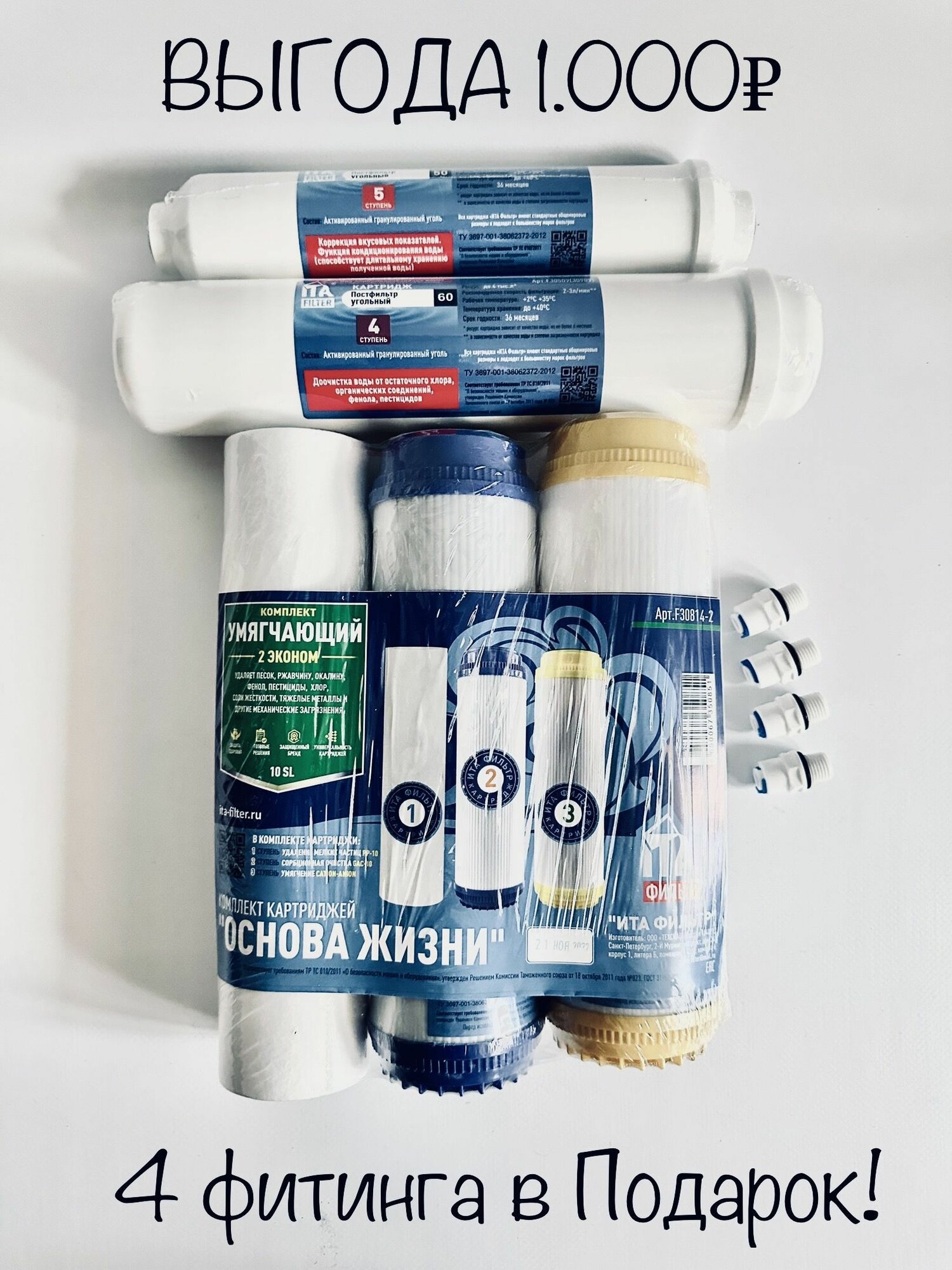 Комплект картриджей 5-и ступенчатый, "Онега-Умягчающий" ITA Filter (4 фитинга 1/4 в комплекте) интересное: