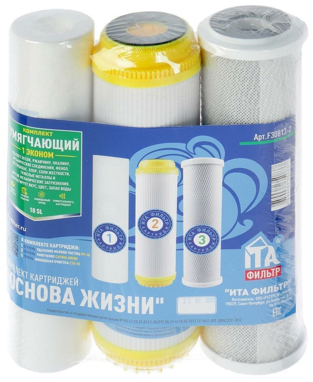 Комплект картриджей для магистральных (проточных) фильтров, размер 10SL (Slim Line 10 дюймов), 3 степени очистки - "Умягчающий 1 эконом" интересное:
