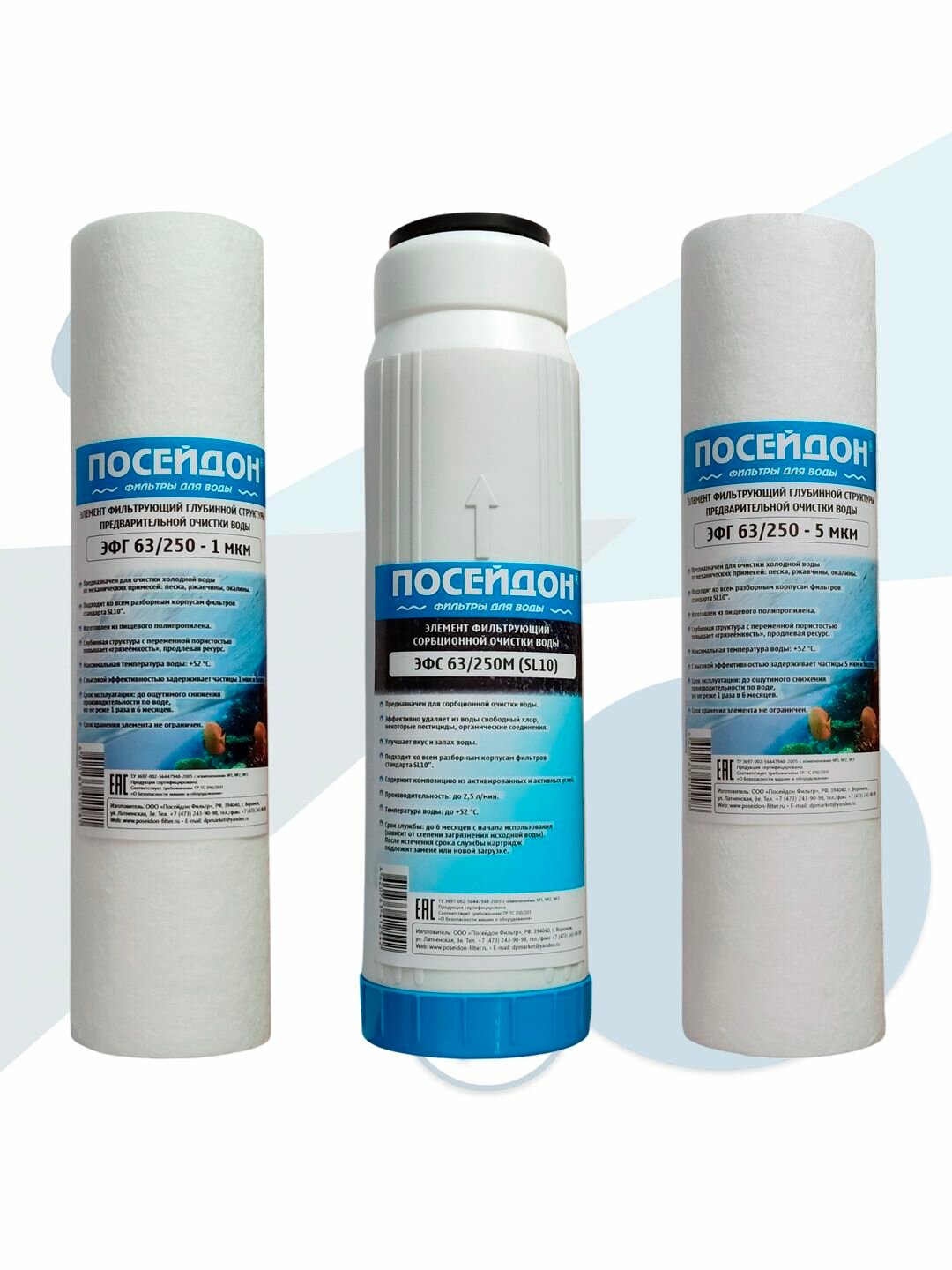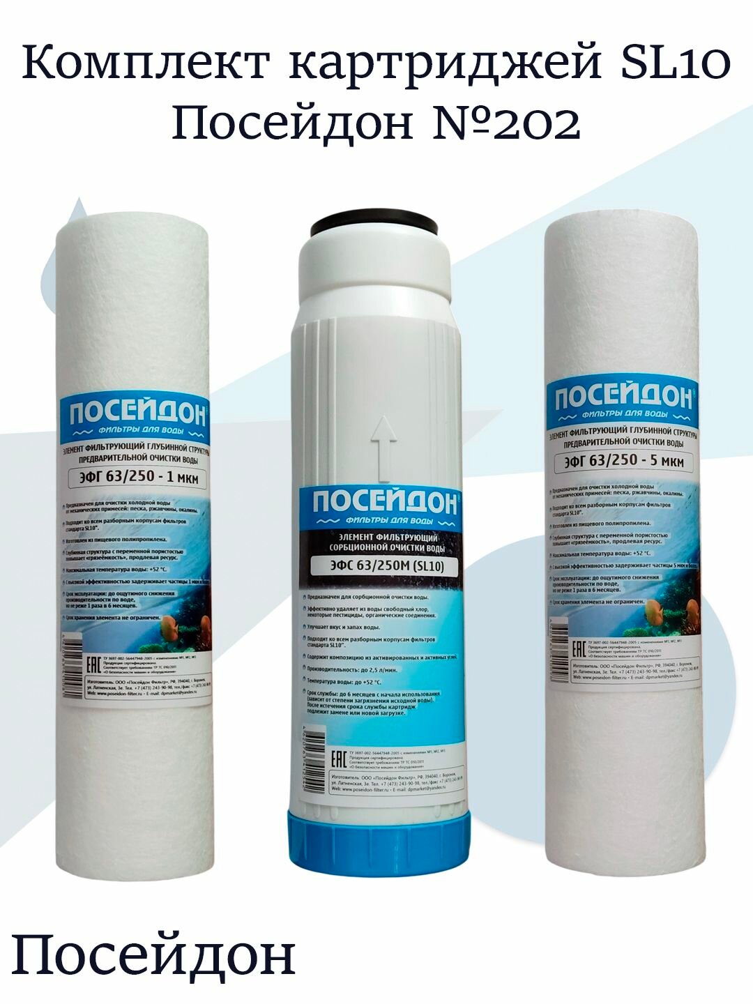 Комплект картриджей 3 ступени для блока предочистки SL10 №202 Посейдон интересное: