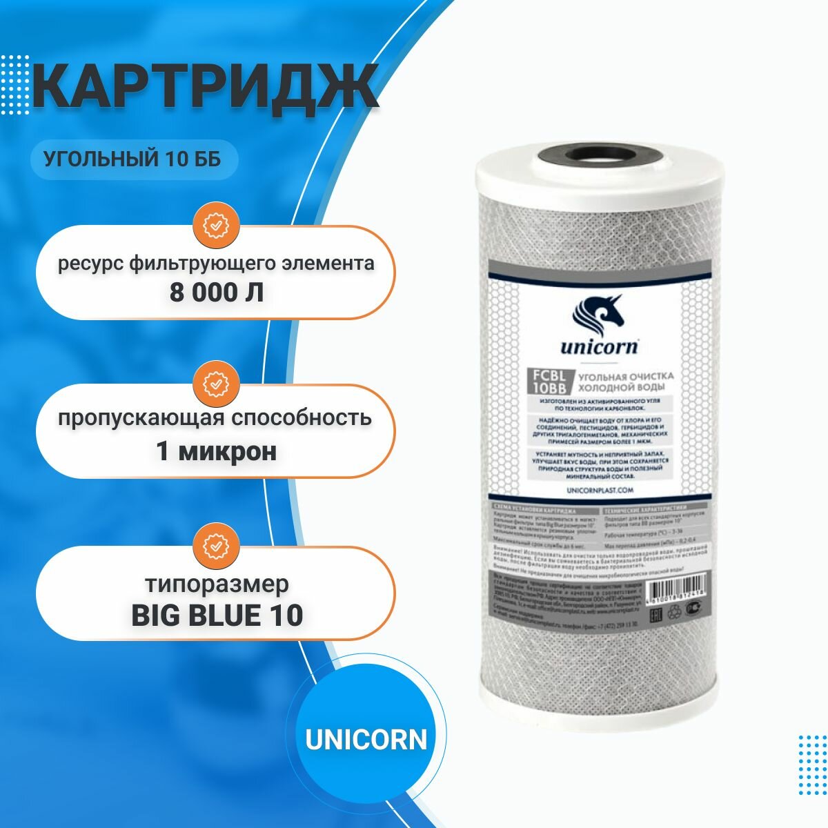 Картридж угольный для проточных систем UNICORN 10 ББ интересное: