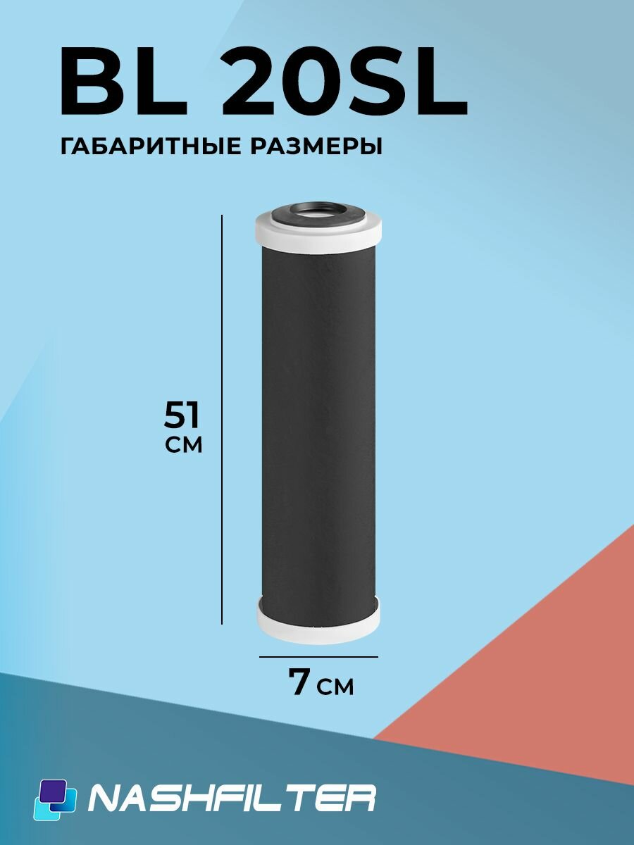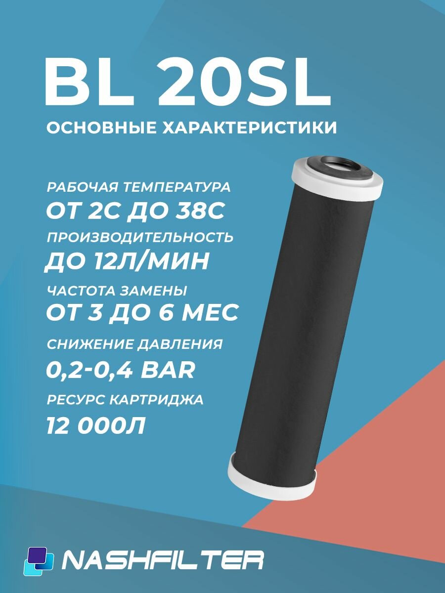 Купить Картридж угольный для фильтра NASHFILTER BL 20SL из прессованного угля, для сорбционной очистки воды (от хлора и органических соединений), Slim Line 20