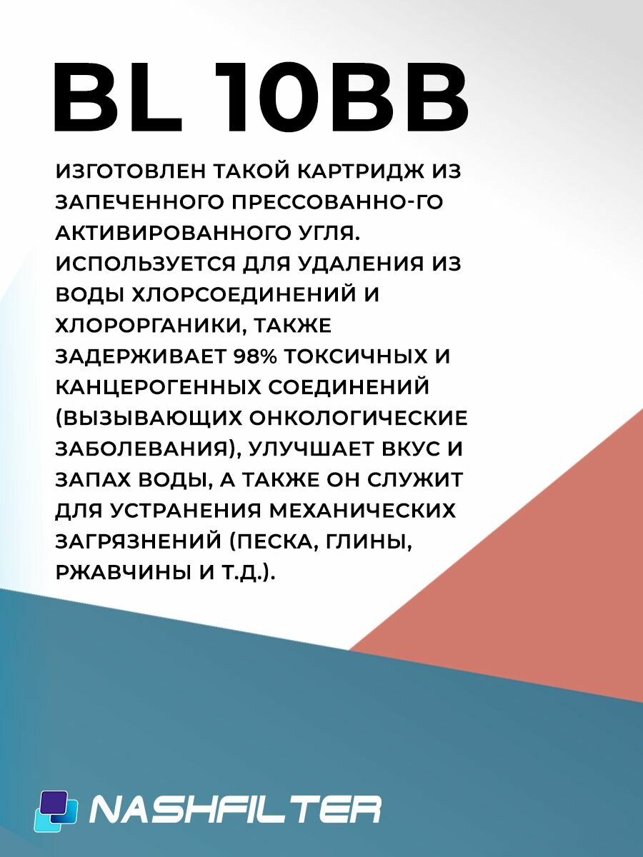 Картридж угольный для фильтра NASHFILTER BL 10BB из прессованного угля, для сорбционной очистки воды (от хлора и органических соединений), Big Blue 10, интересное: