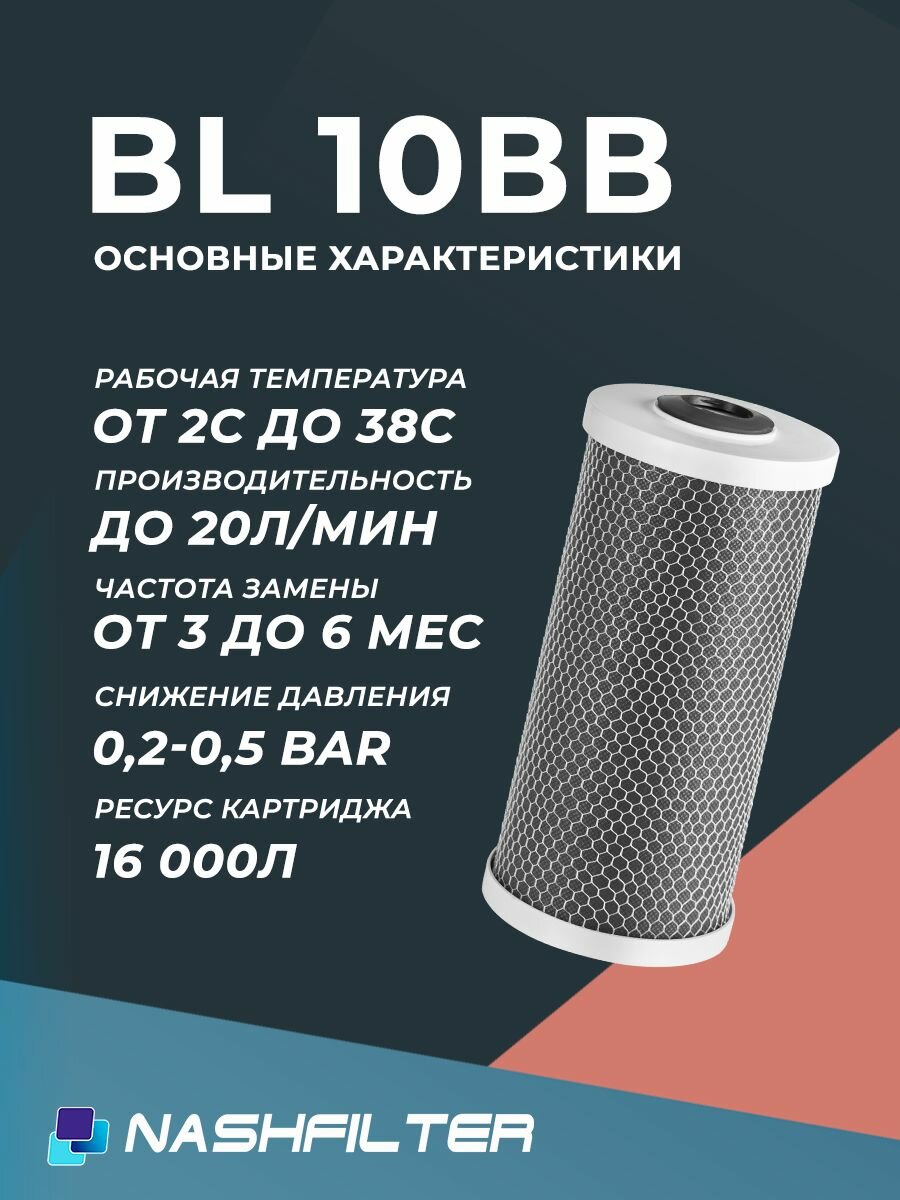 Картридж для фильтра угольный NASHFILTER BL 10BB из прессованного угля, для сорбционной очистки воды (от хлора и органических соединений) 3 шт интересное: