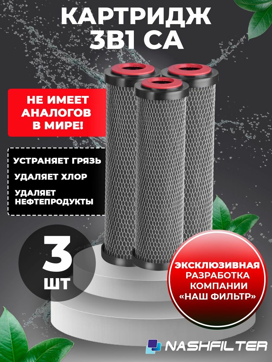 Купить Картридж 3 в 1 CA 10 SL, механическая и сорбционная очистка воды (удаление хлора, механических загрязнений, остатки нефтепродуктов и др.), Slim Line 10 3 шт