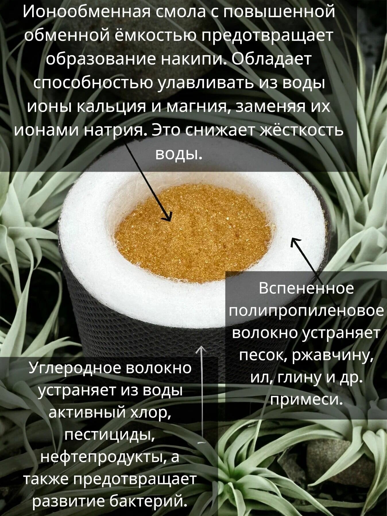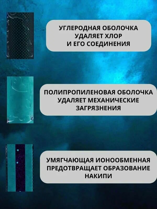 | Эффект | Смягчение воды, Удаление бактерий, Удаление железа, Удаление механических загрязнений, Удаление органических веществ, Удаление сероводорода, Удаление хлора, Устранение привкусов и запахов |