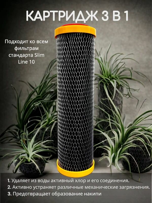 Картридж 3 в 1 CA 10 SL, механическая и сорбционная очистка воды (удаление хлора, механических загрязнений, остатки нефтепродуктов и др.), Slim Line 10 3 шт