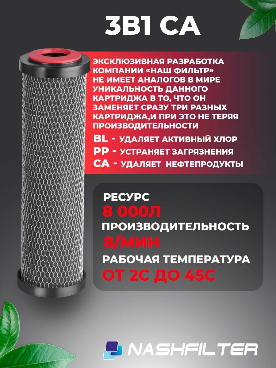 СохранитьКартридж 3 в 1 CA 10 SL, механическая и сорбционная очистка воды (удаление хлора, механических загрязнений, остатки нефтепродуктов и др.), Slim Line 10 5 шт интересное: