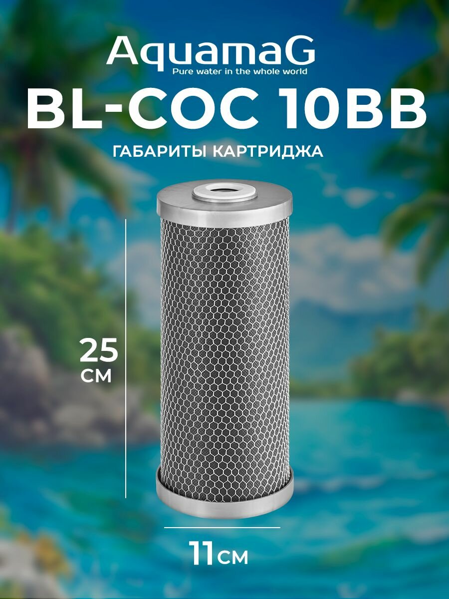 | Комплектация | Картридж для фильтра воды с прессованным КОКОСОВЫМ углём BL-COC 10 BB 2 шт |