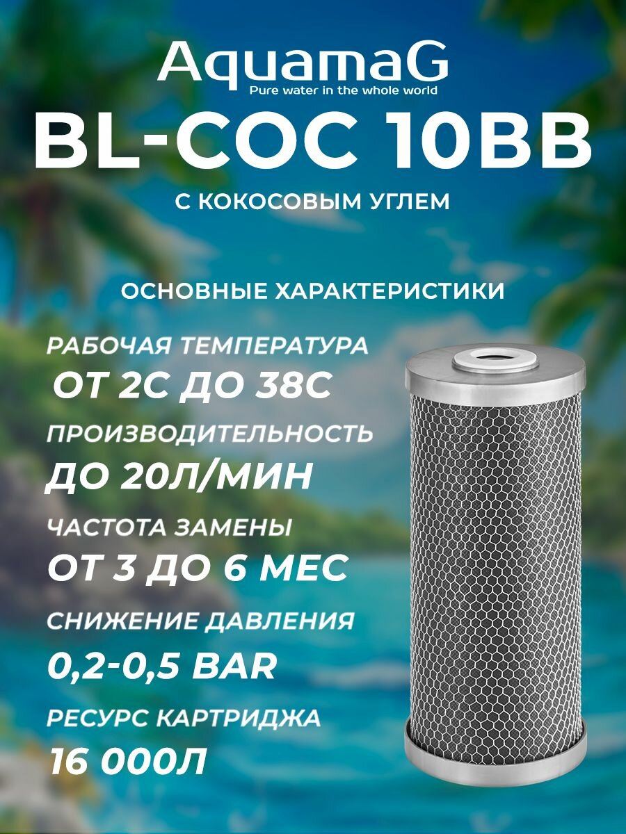 Картридж для фильтра воды с прессованным кокосовым углём BL-COC 10 BB 2 шт интересное: