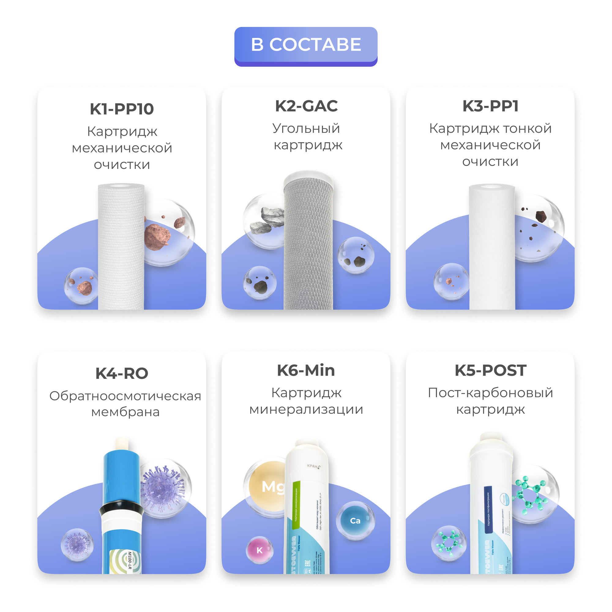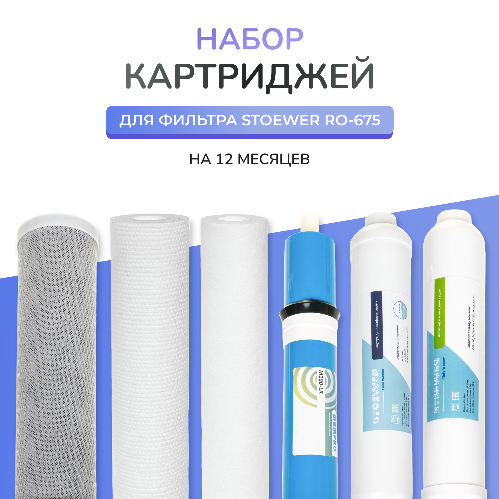 Набор картриджей для фильтров обратного осмоса STOEWER Kit-6 для RO-675 с мембраной интересное: