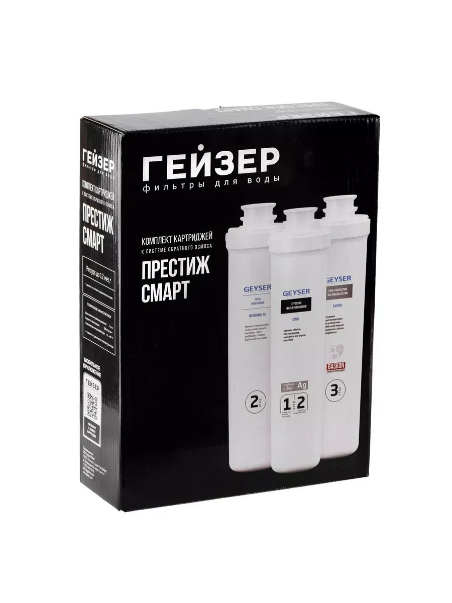 Купить Комплект картриджей Гейзер "Престиж Смарт", для фильтра обратного осмоса, с активированным углём, арт 50124