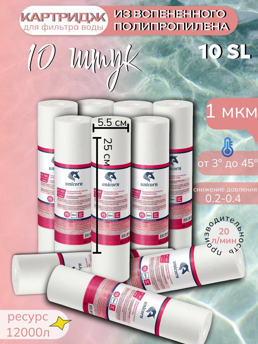 Картридж для фильтра воды из вспененного полипропилена РS 10SL (10 штук), 1 mkm UNIKORN интересное: