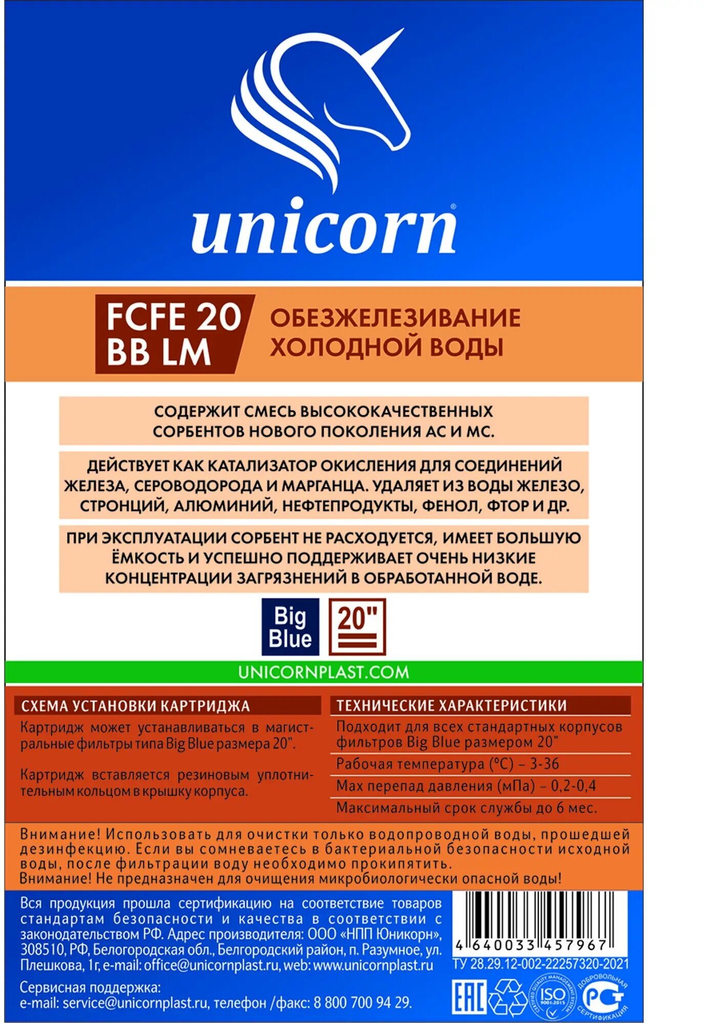 КартриджFCFE-20-BB "Unicorn" антижелезо сменный модуль, предназначенный для удаления железа интересное:
