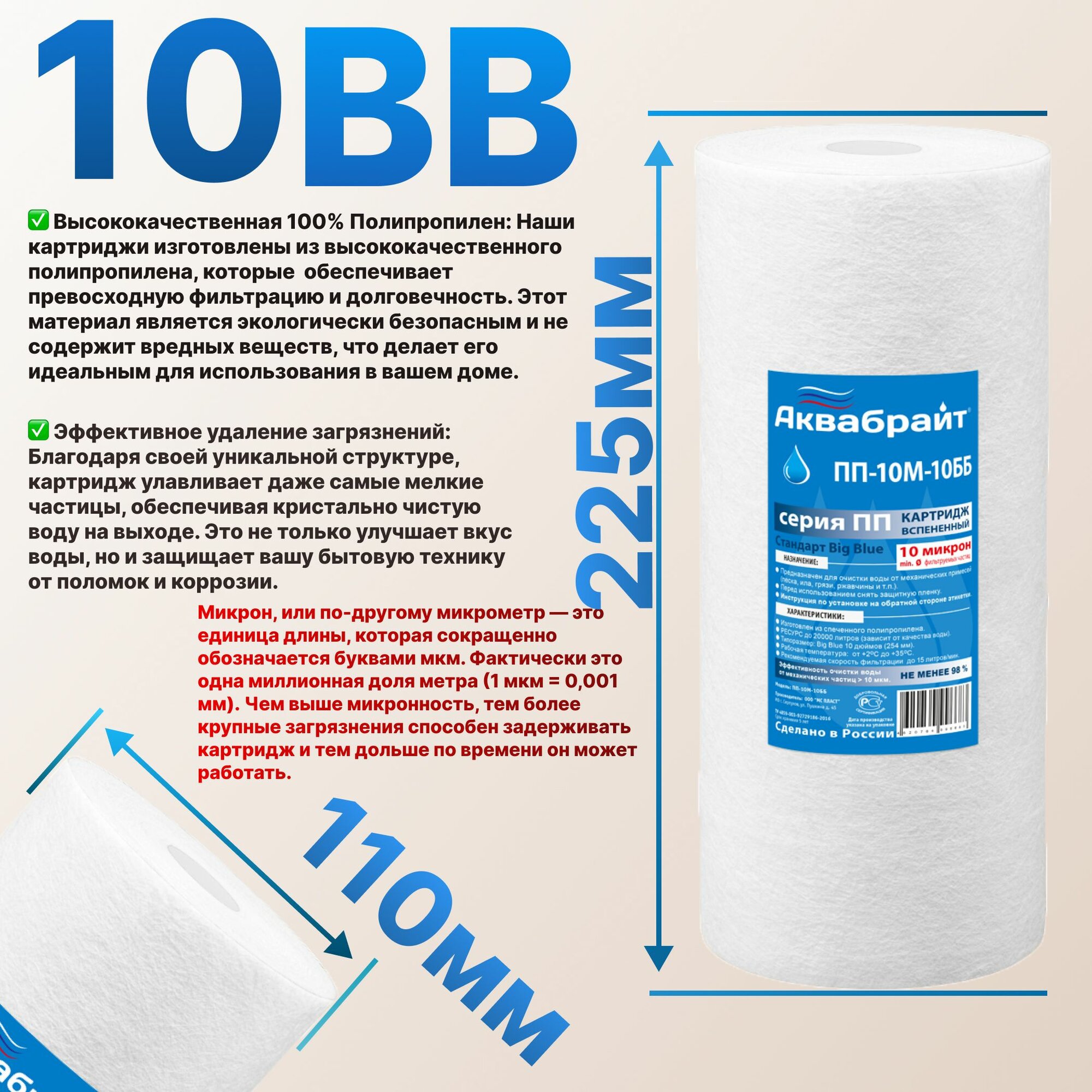 Картридж полипропиленовые механической очистки 10ББ (10 мкм) аквабрайт / холодной воды / для магистрального фильтра интересное: