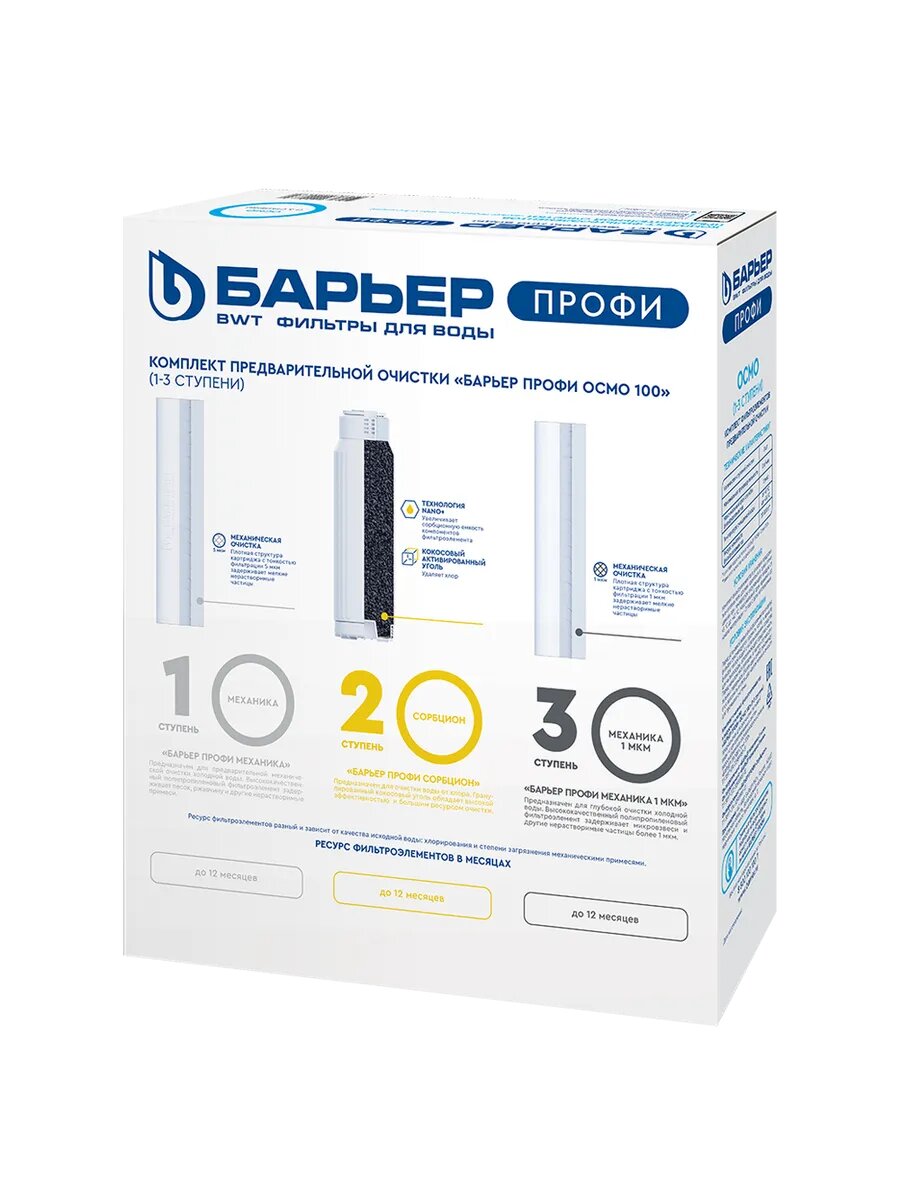 Комплект картриджей Барьер "Профи Осмо", для фильтров под мойку, 1-3 ступени интересное: