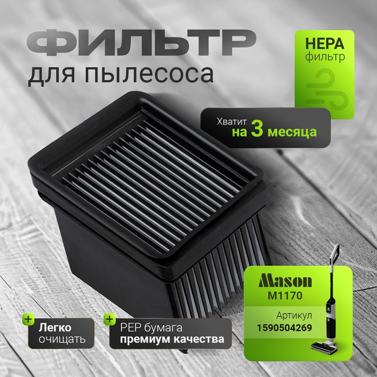 НЕРА фильтр очищаемый, для вертикального моющего пылесоса Mason M1170 интересное: