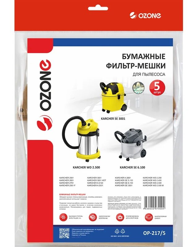 Фильтр-мешки для пылесоса KARCHER, 5 шт бумага, сухая пыль, бренд: AIRPAPER, арт. РК-217/5 интересное: