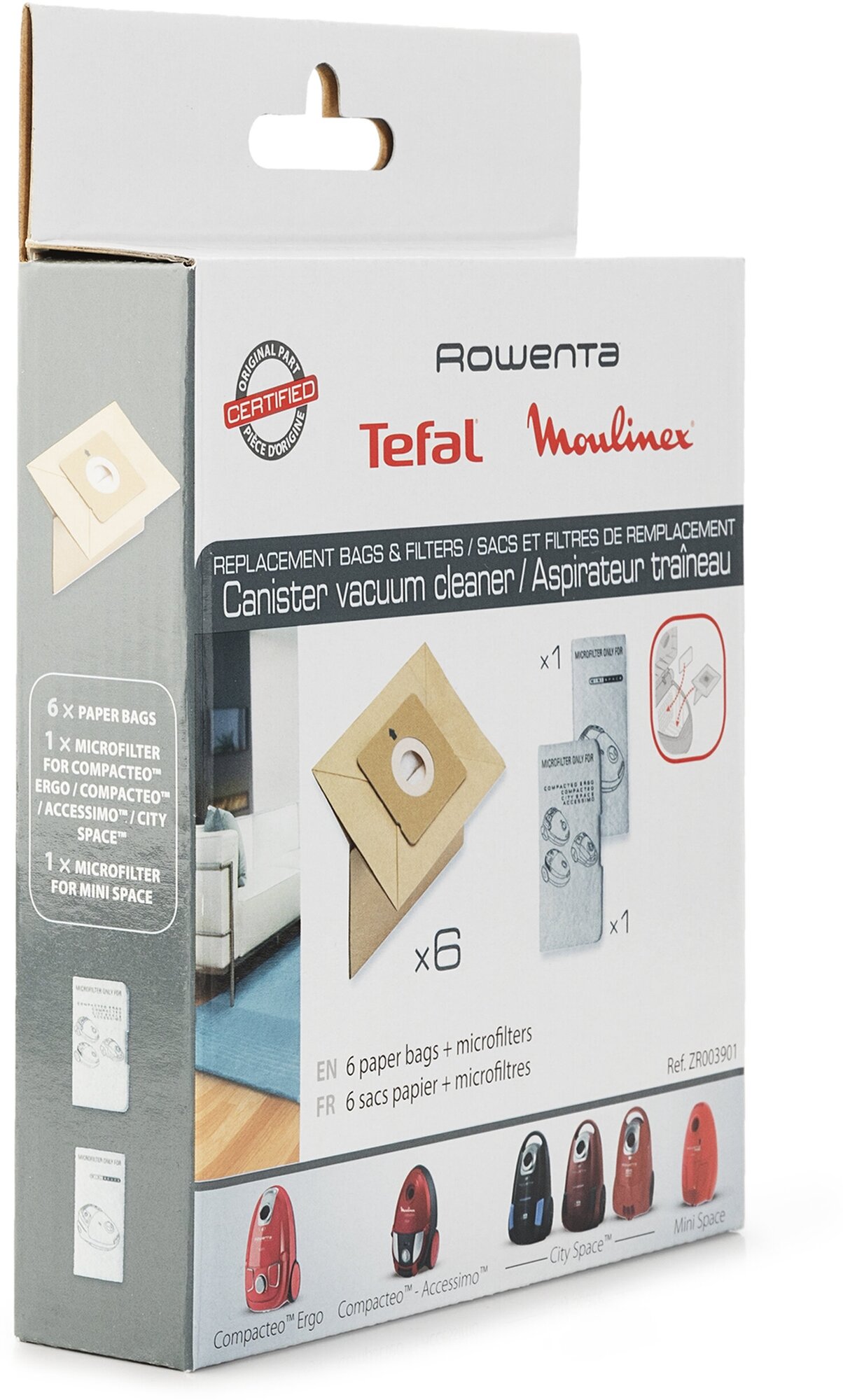| Дополнительная информация | в комплекте 6 одноразовых мешков для сбора пыли,1 микрофильтр для серии Compacteo, 1 микрофильтр для серии Mini Space |