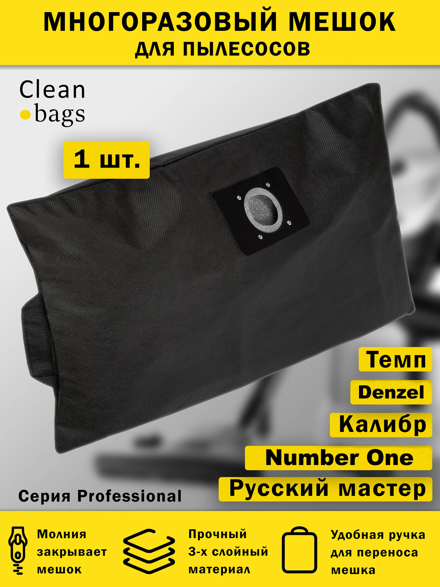 Многоразовый мешок с молнией для пылесоса Denzel, Темп, NUMBER ONE интересное: