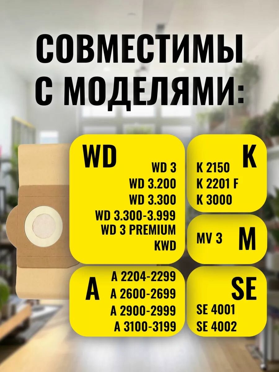 Мешки для пылесоса Karcher WD3. 3 шт , Фильтр - мешки пылесборники для Керхер WD3 интересное: