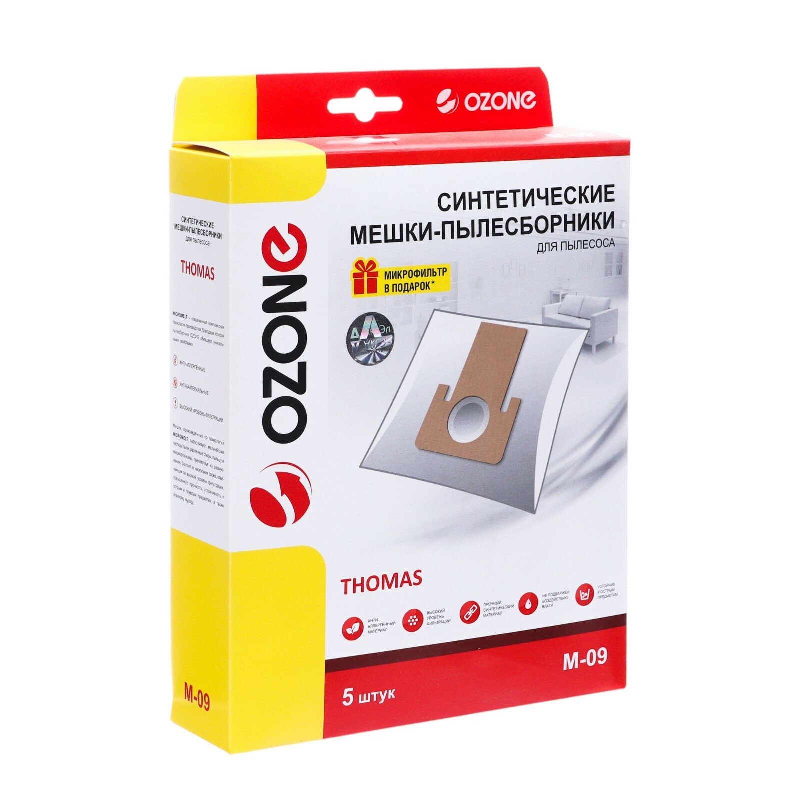 Купить Мешки-пылесборники Ozone M-09, 5 шт, синтетика, для пылесоса Thomas