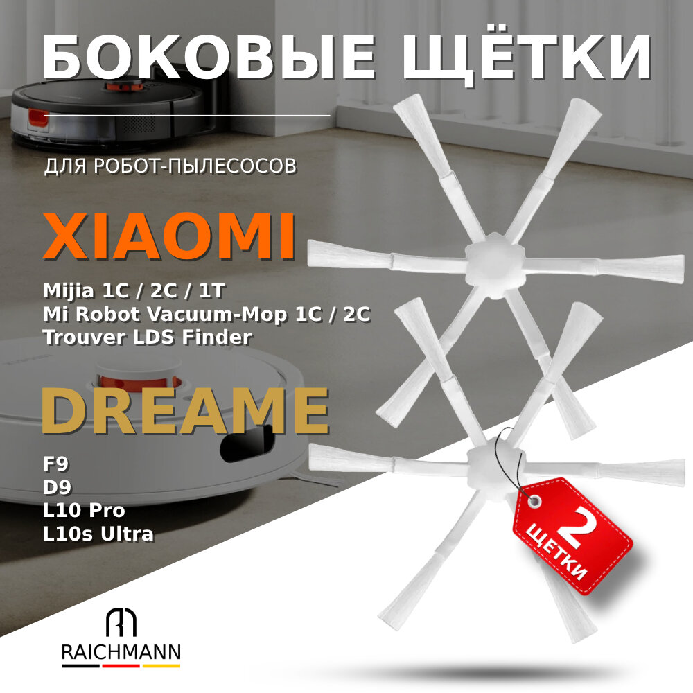 Боковые щетки 2 шт. для робота-пылесоса Roborock Vacuum-Mop 2C, 1C SKV4093GL, Dreame F9 D9, Bot L10 Pro, L10s Ultra, Trouver LDS Finder (WHITE) интересное: