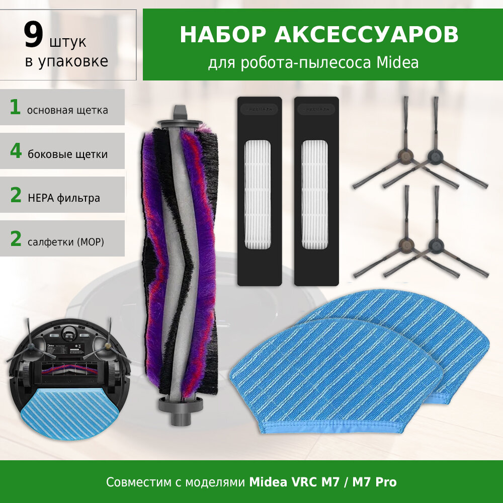 Комплект фильтров, щеток и сменных салфеток для робота-пылесоса Midea VRC M7, M7 Pro / Weissgauff Robowash Laser Map интересное: