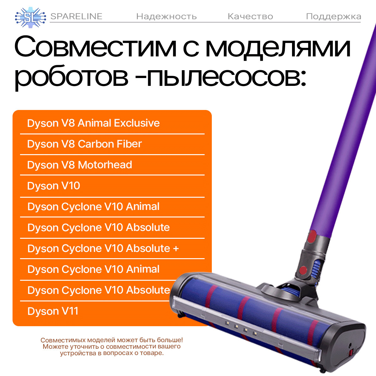 | Производитель совместимого пылесоса | Dyson |