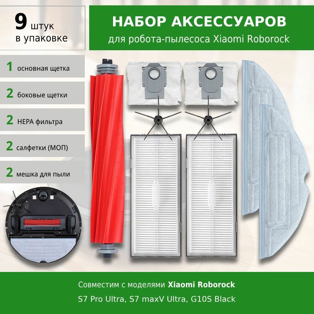 Комплект фильтров и щеток для робота-пылесоса Xiaomi Roborock S7 Pro Ultra, S7 maxV Ultra, G10S Black интересное: