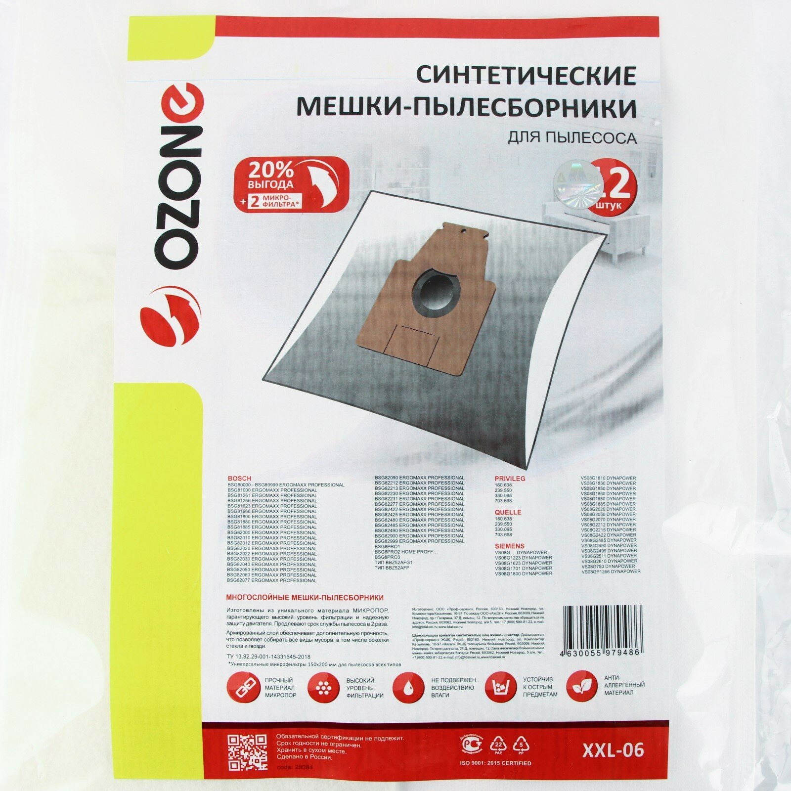 Купить Мешки-пылесборники Ozone XXL-06 синтетические 12 шт + 2 микрофильтра для BOSCH, PRIVILEG, QUELLE и др.