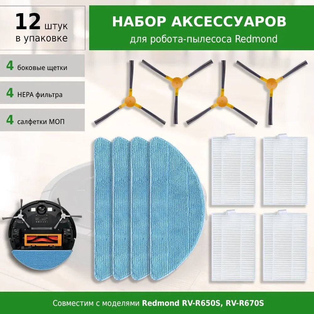 Комплект фильтров, щеток и сменных салфеток для робота-пылесоса Redmond RV-R650S, RV-R670S интересное: