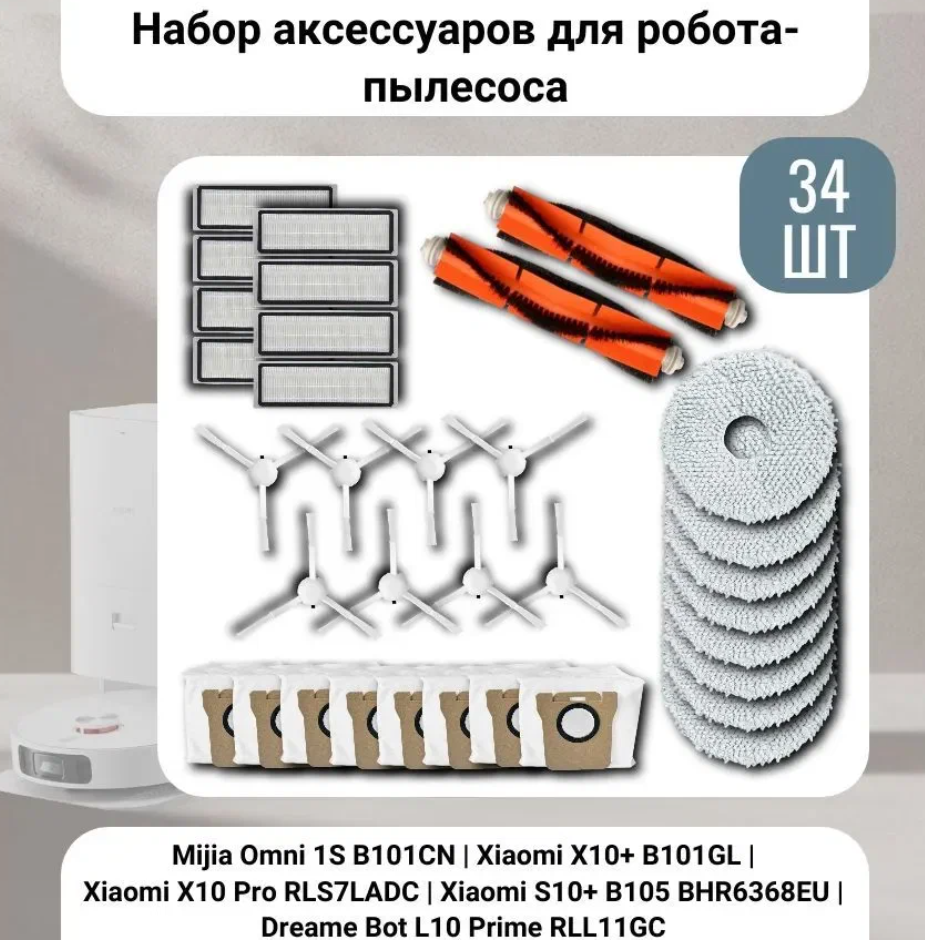 СохранитьНабор аксессуаров для робота-пылесоса Mijia Omni 1S B101CN, Xiaomi X10+ B101G, X10 Pro RLS7LADC, S10+ B105 BHR6368EU, Dreame Bot L10 Prime RLL11GC интересное: