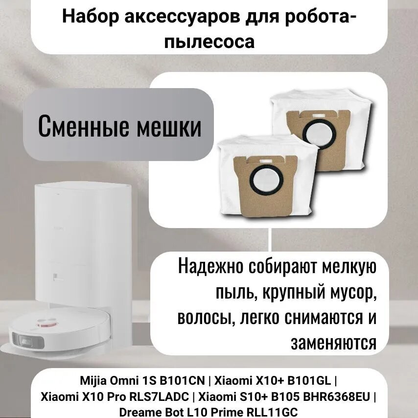 Набор аксессуаров lля робот-пылесосf Xiaomi , Infinite Robot Vacuum-Mop 1S (OMNI 1S)/OMNI B101CN: основная щетка, боковая щетка белая 2шт, нера-фильтр 2 шт, салфетка из микрофибры 4 шт, мешки для пыли 2шт.