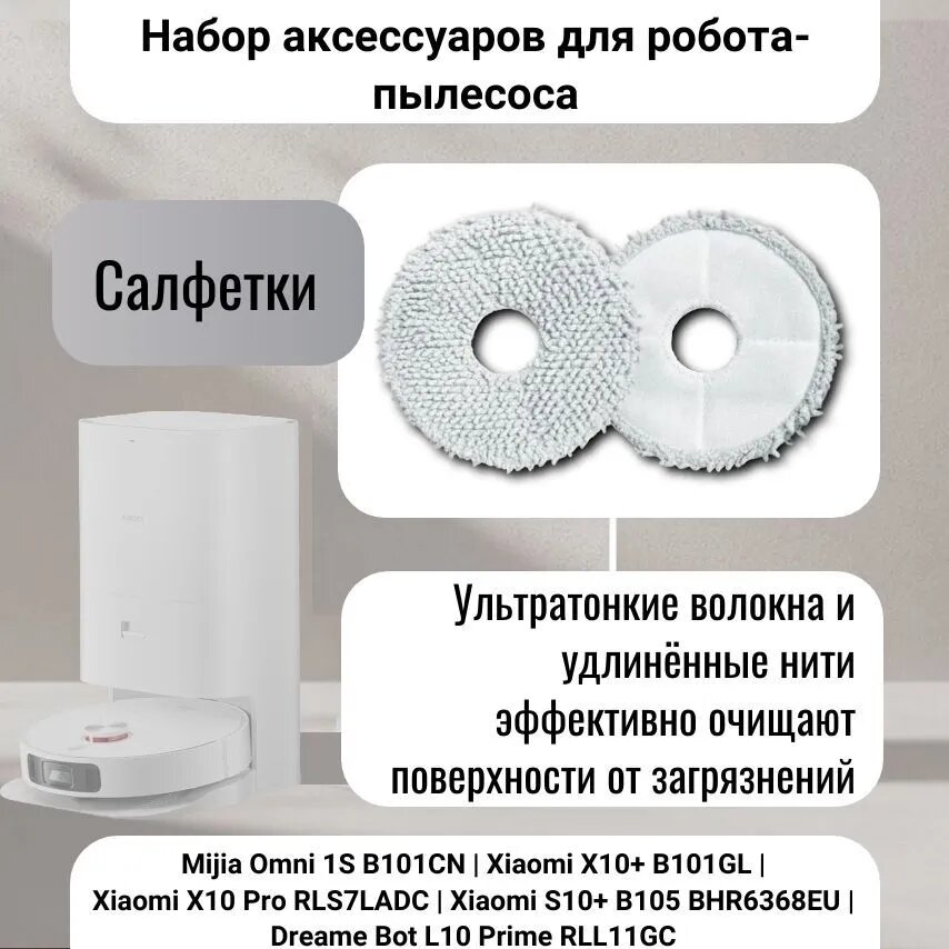 Салфетки из микрофибры для робот-пылесос Xiaomi , Omni 1S, B101cn/Dreame S10, S10pro - 4 шт.