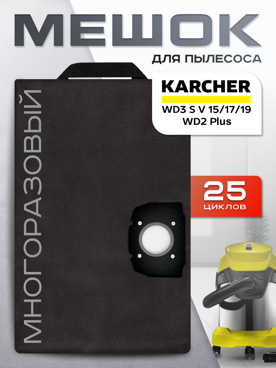 Купить Мешок для пылесоса Керхер WD 2 Plus, Karcher WD 3, KWD 1, фильтр пакет многоразовый, ROCKSTAR ZIP-K12
