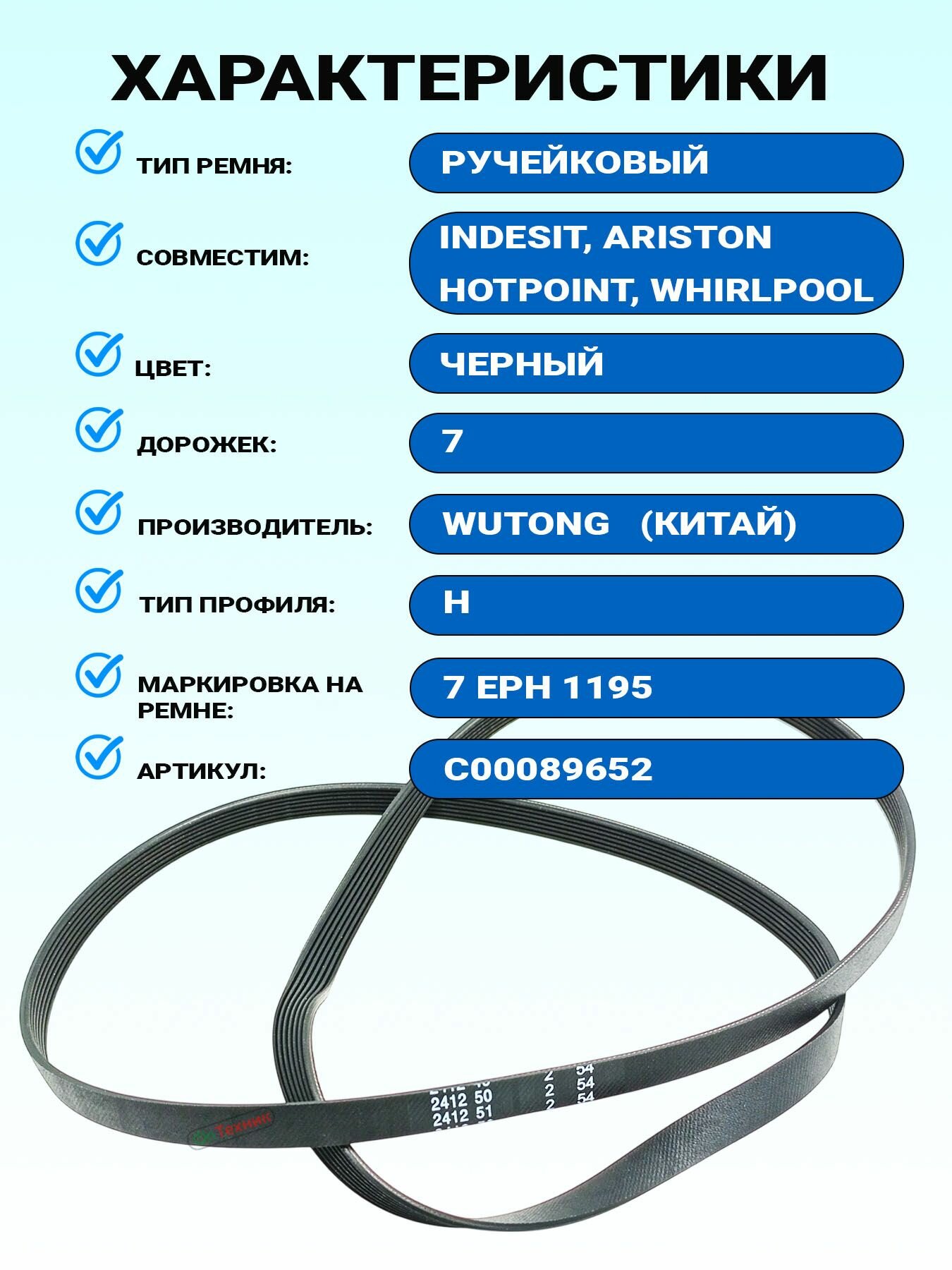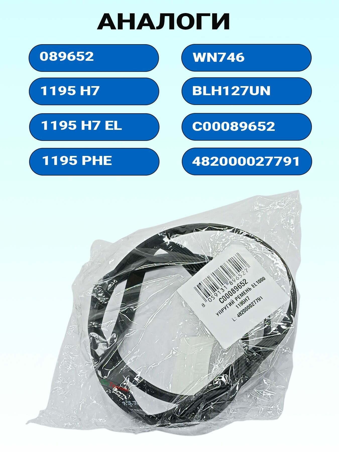 | Комплектация | Приводной ремень стиральной машины 1195 H7 (EPH) |