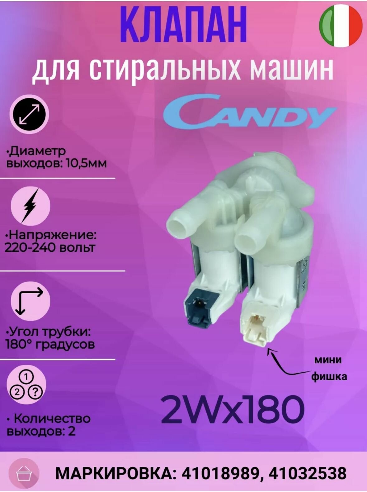 Заливной( впускной) клапан CANDY 2Wx180. 41018989 Коды замен: 41029238 интересное: