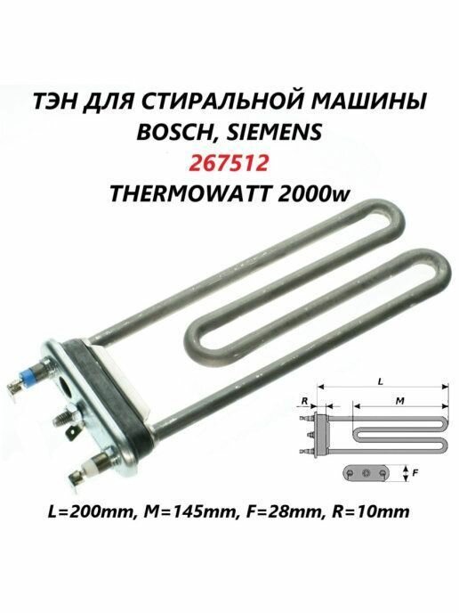 Тэн стиральной машины 2000W, 20,5 см Bosch, Siemens, 00267512 267512 интересное: