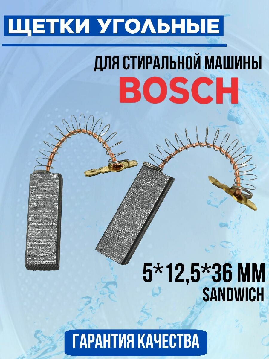 Щетки угольные двигателя для стиральной машины Bosch (Бош), Siemens (Сименс) 5*12,5*36мм Sandwich (комплект 2шт.) интересное: