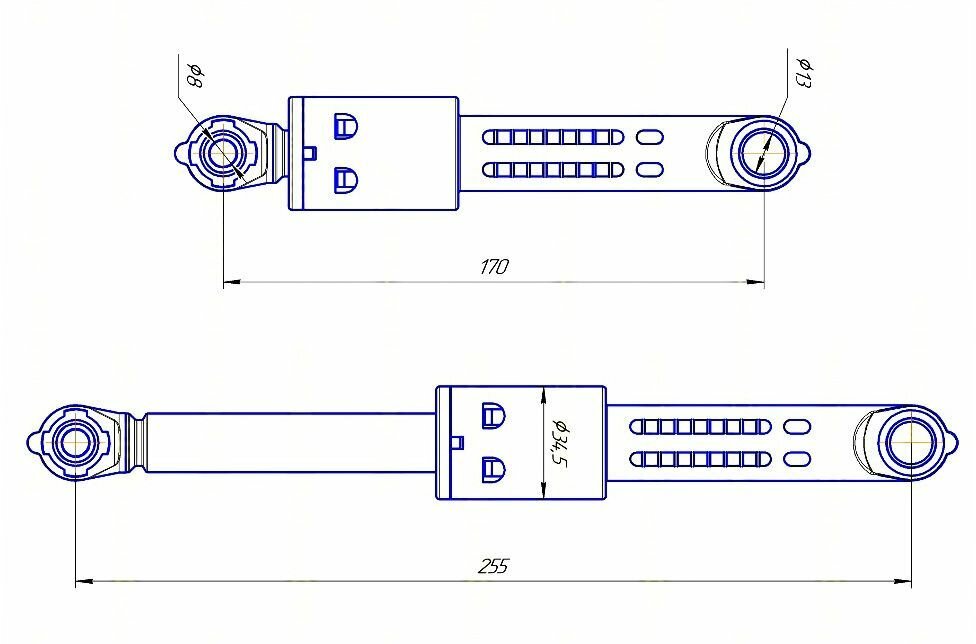 Амортизатор стиральной машины Bosch, Siemens, Miele - втулка 8 мм - 118869 90N 185-270 мм ANSA Италия
